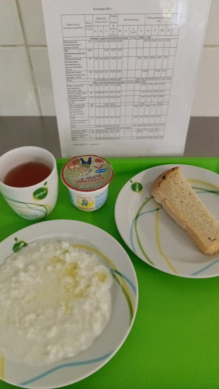 Меню на 26.09.2025 год