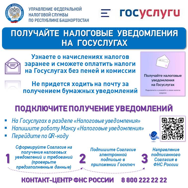 Подробную информацию о порядке получения налоговых уведомлений через портал Госуслуг можно получить по телефону контакт-центра Федеральной налоговой службы 8 (800) 222-22-22. |